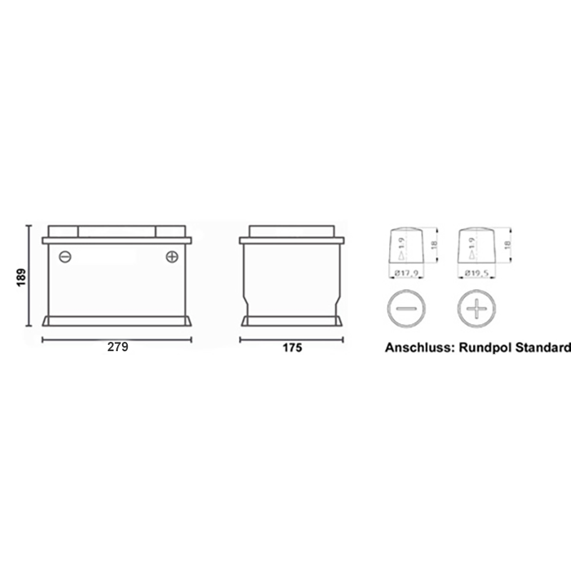 Diese Batterie hat die gleichen Abmessungen, Befestigungspunkte und Polanschlüsse wie bei einer originalen 70Ah Blei/GEL/AGM Batterie.