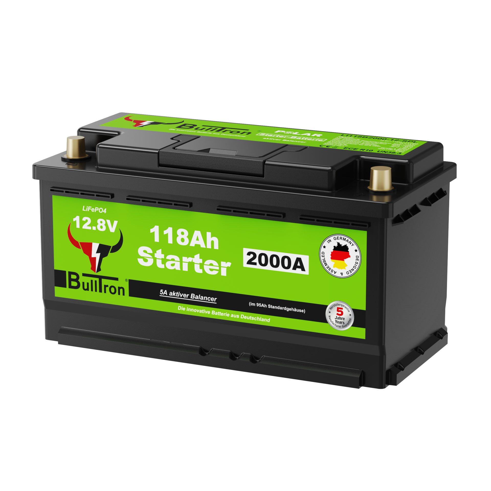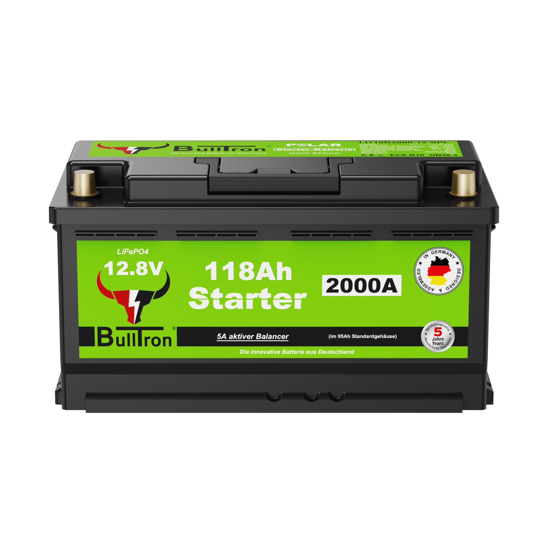 118Ah BullTron Starter Polar | die starke Lithium Starter-Batterie im Original DIN-Gehäuse einer 100Ah Blei-Starter-Batterie.