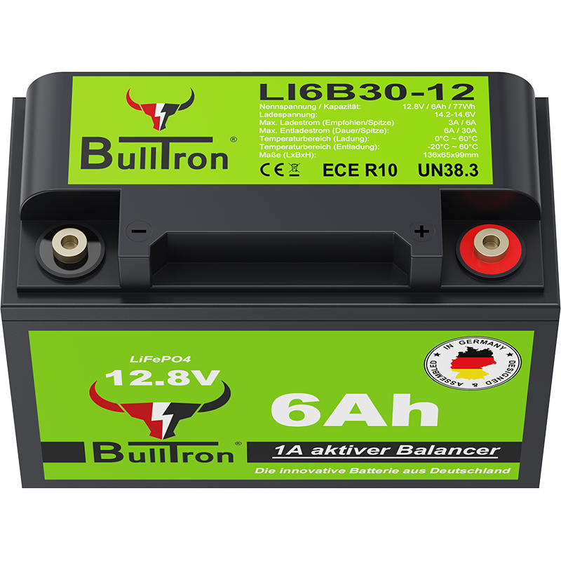 8 Gründe, die für eine 6Ah Clesana Lithiumbatterie von BullTron sprechenEntwickelt und konfektioniert in Deutschland. BullTron ist ein deutscher Hersteller, und so finden auch Service und Reparatur in Deutschland statt.