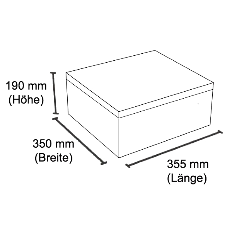 Abmessungen (LxBxH) in mm: 355 x 350 x 190 (inkl. Pole)