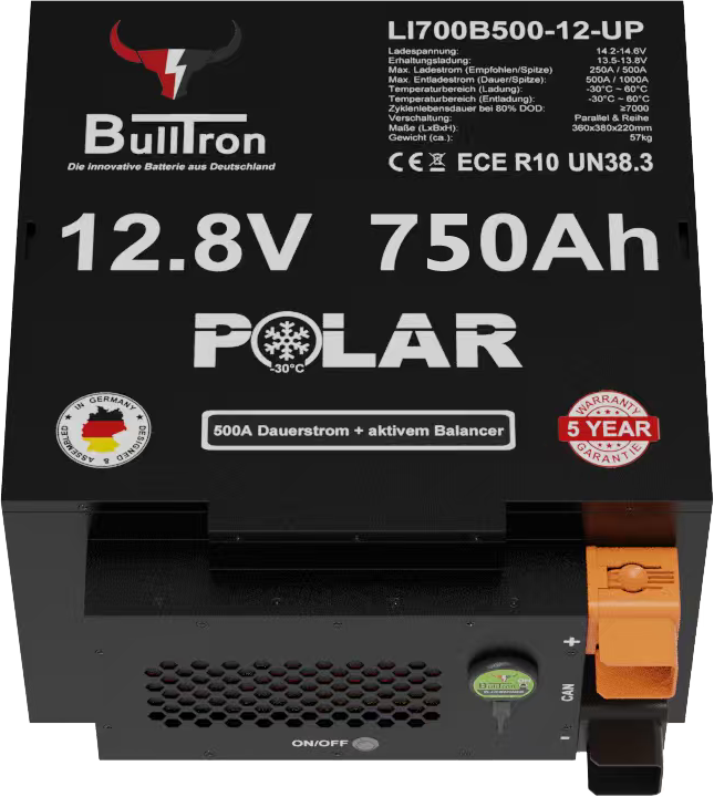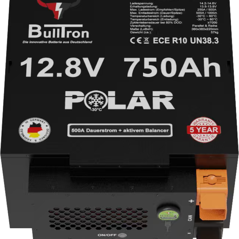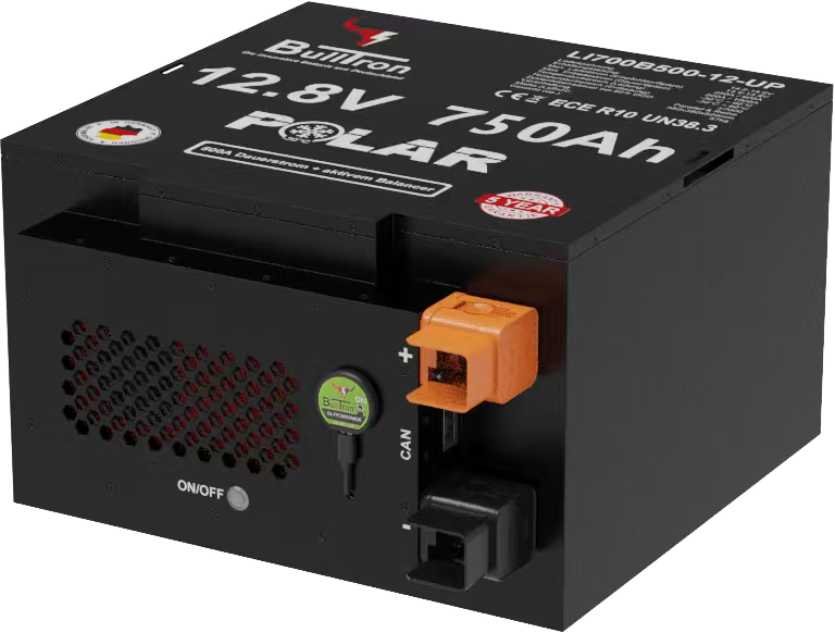 750Ah LiFePO4 12.8V Polar Akku mit 500A BMS, Bluetooth & WLAN App, 5A aktiv Balancer und Heizung